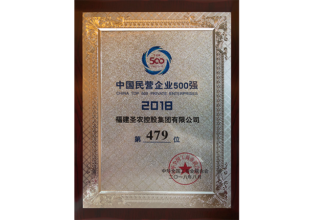 8月29日,由全国工商联与辽宁省政府组织主办的2018年度中国民营企业500强榜单在历史文化名城沈阳盛大公布,福建圣农控股集团有限公司作为参选企业中为数不多的畜牧业集团,以160亿元的营业成绩上榜年度民营企业制造业500强。