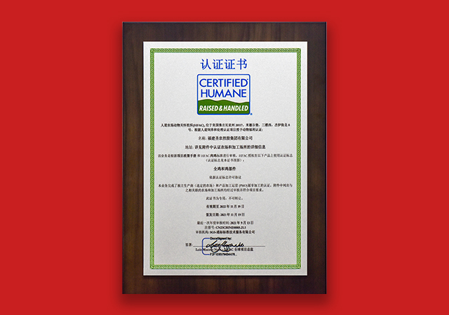 2021年11月23日,圣农集团与宜家共同推动的动物福利项目(Better Chicken)荣获人道农场动物关怀组织(Humane Farm Animal Care, HFAC)颁发的“肉鸡动物福利认证”证书。由此,圣农集团成为中国首家获得国际权威组织HFAC认证的企业。