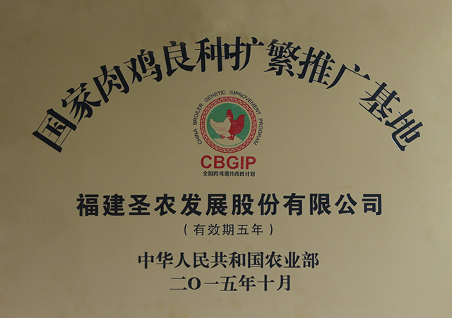 10月份,农业部办公厅公布第一批国家肉鸡核心育种场和国家肉鸡良种扩繁推广基地名单,圣农发展股份有限公司榜上有名,列为“国家肉鸡良种扩繁推广基地”。